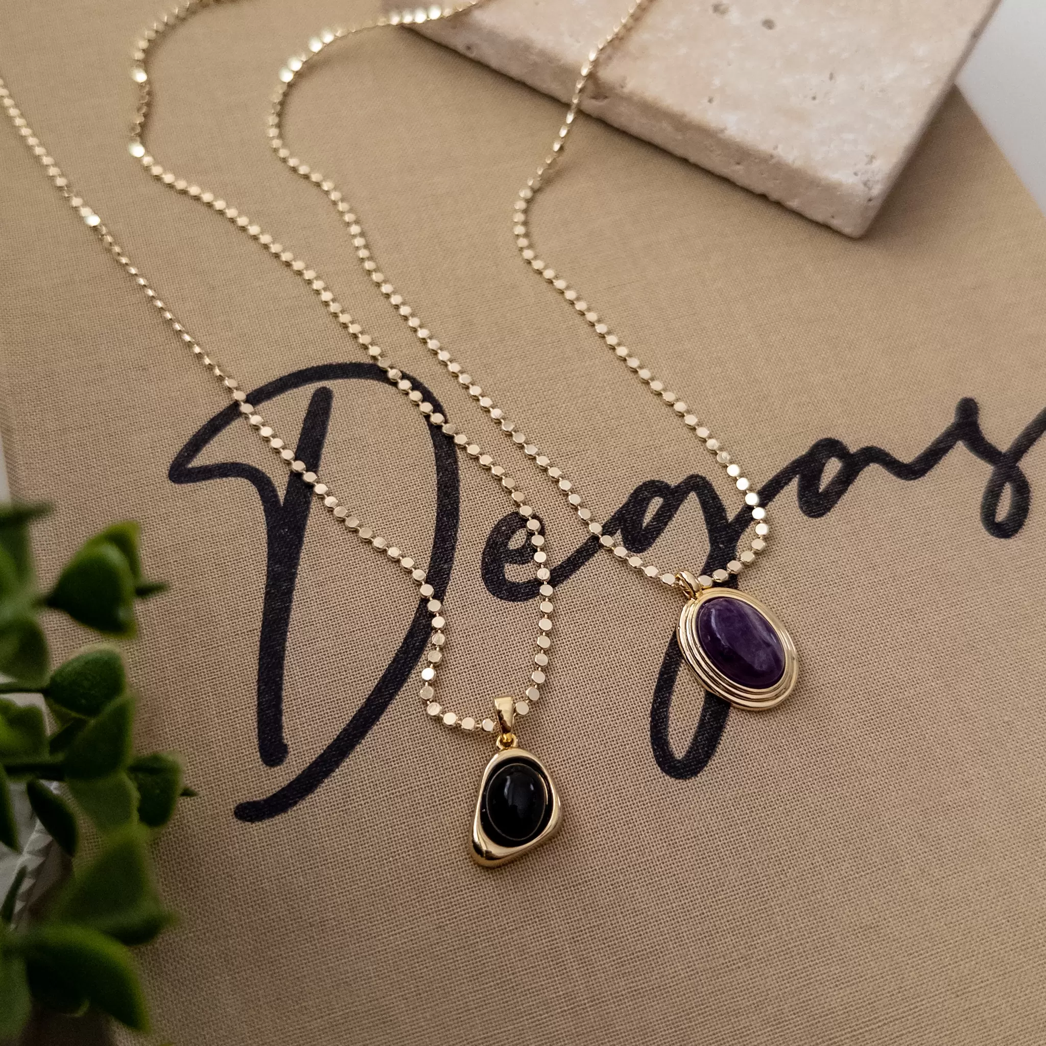 Doğaltaş Uçlu 60cm Ezme Zincirli Zarif Kolye