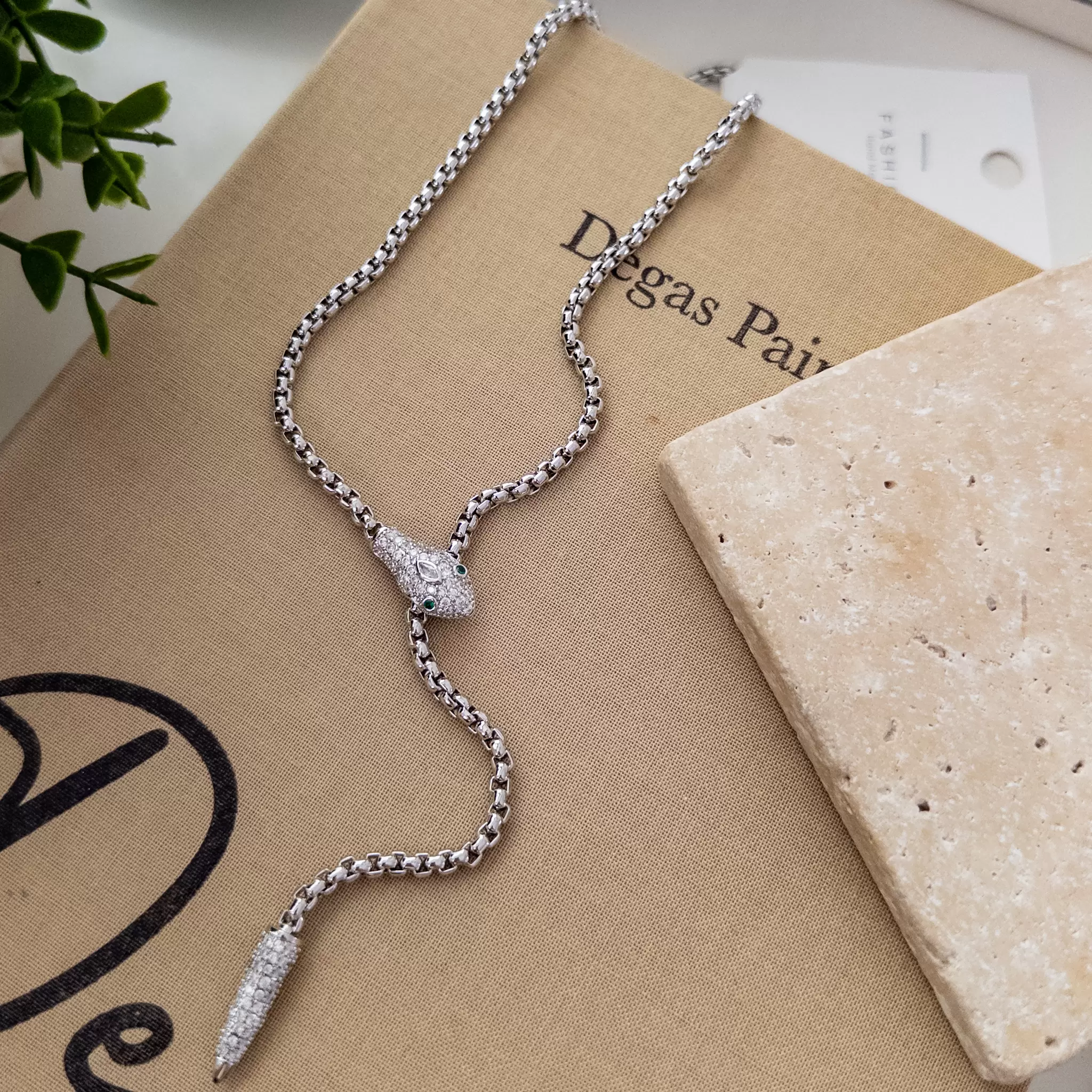 Gümüş Renk Zirkon Taş İşlemeli Tasarım Yılan Kolye