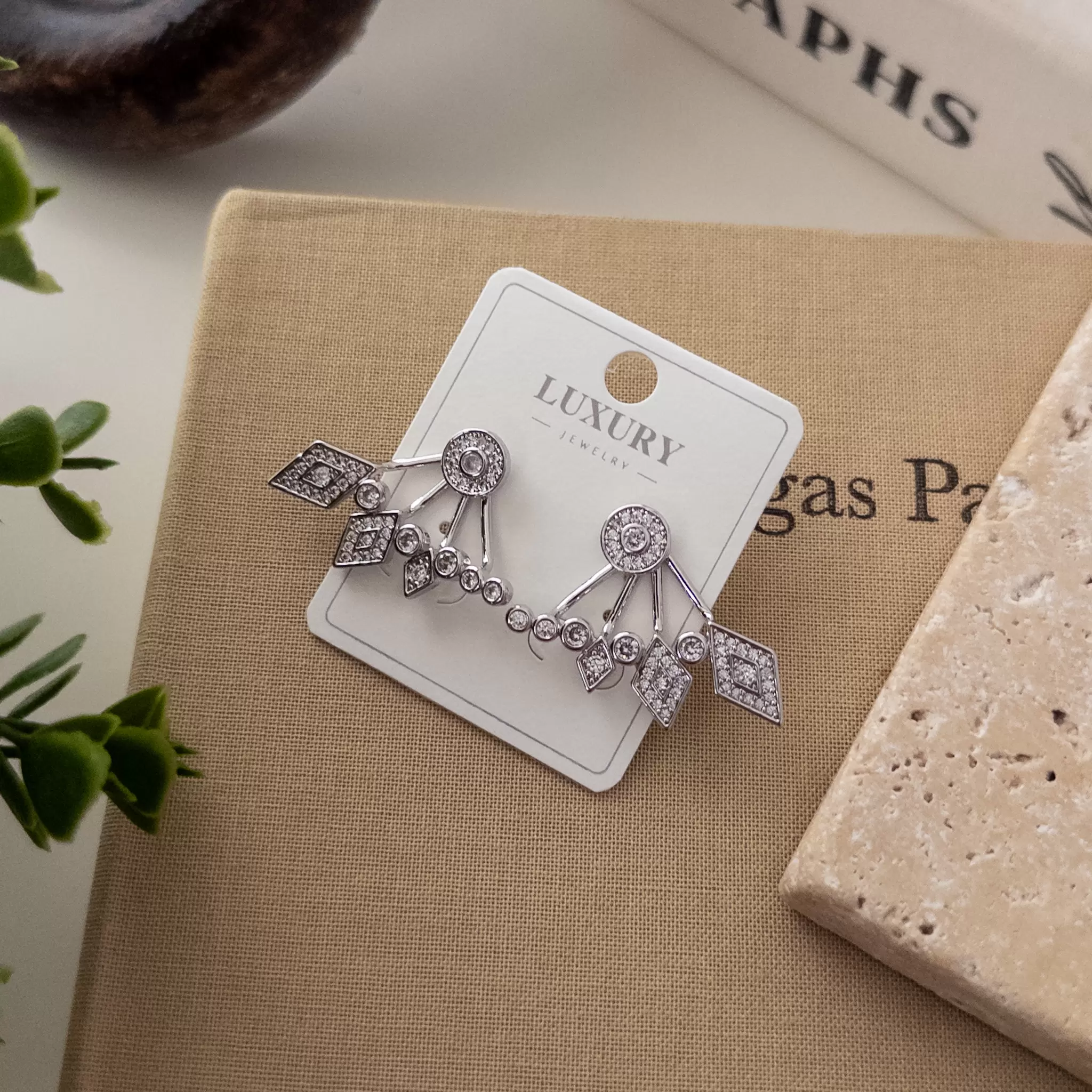 Gümüş Renk Zirkon Taşlı Tasarım Hayalet Küpe