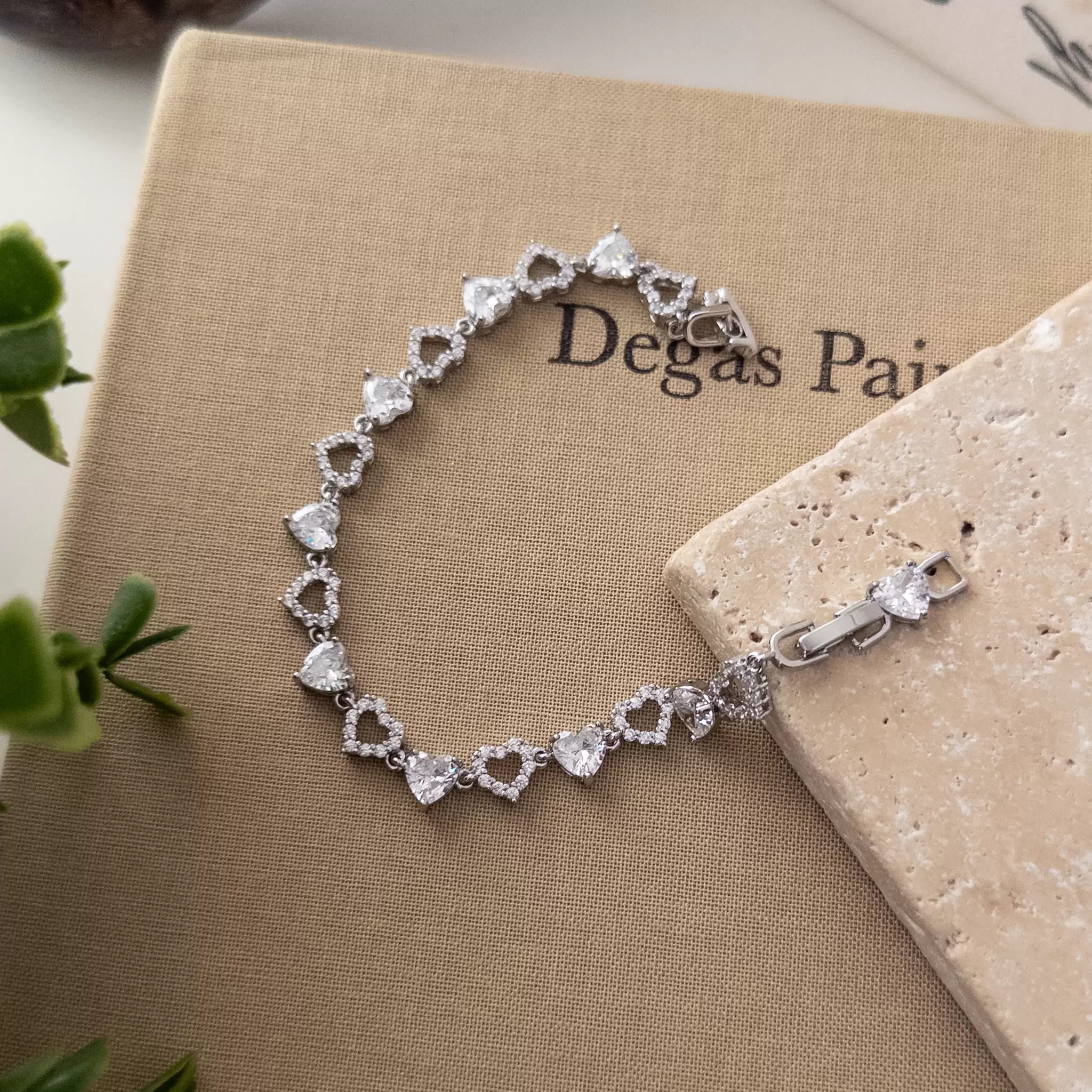 Gümüş Renk Zirkon Taşlı Zarif Kalp Figür Bileklik