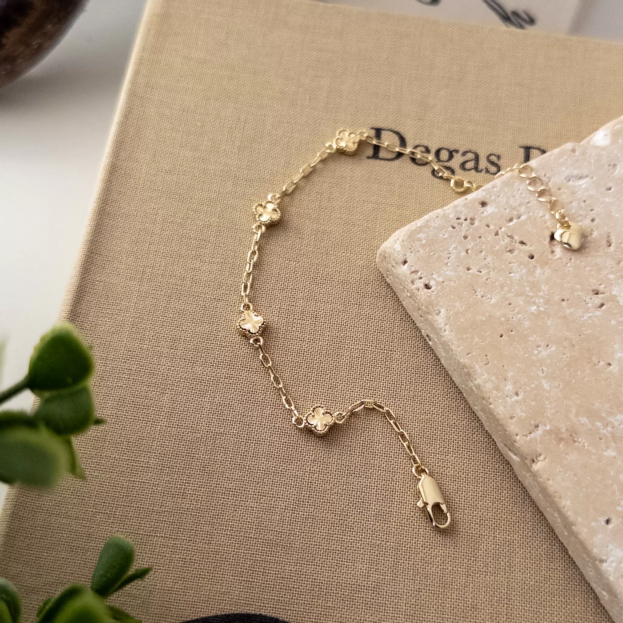 Lazer Kesim Yonca Detaylı Minimal Zincir Bileklik