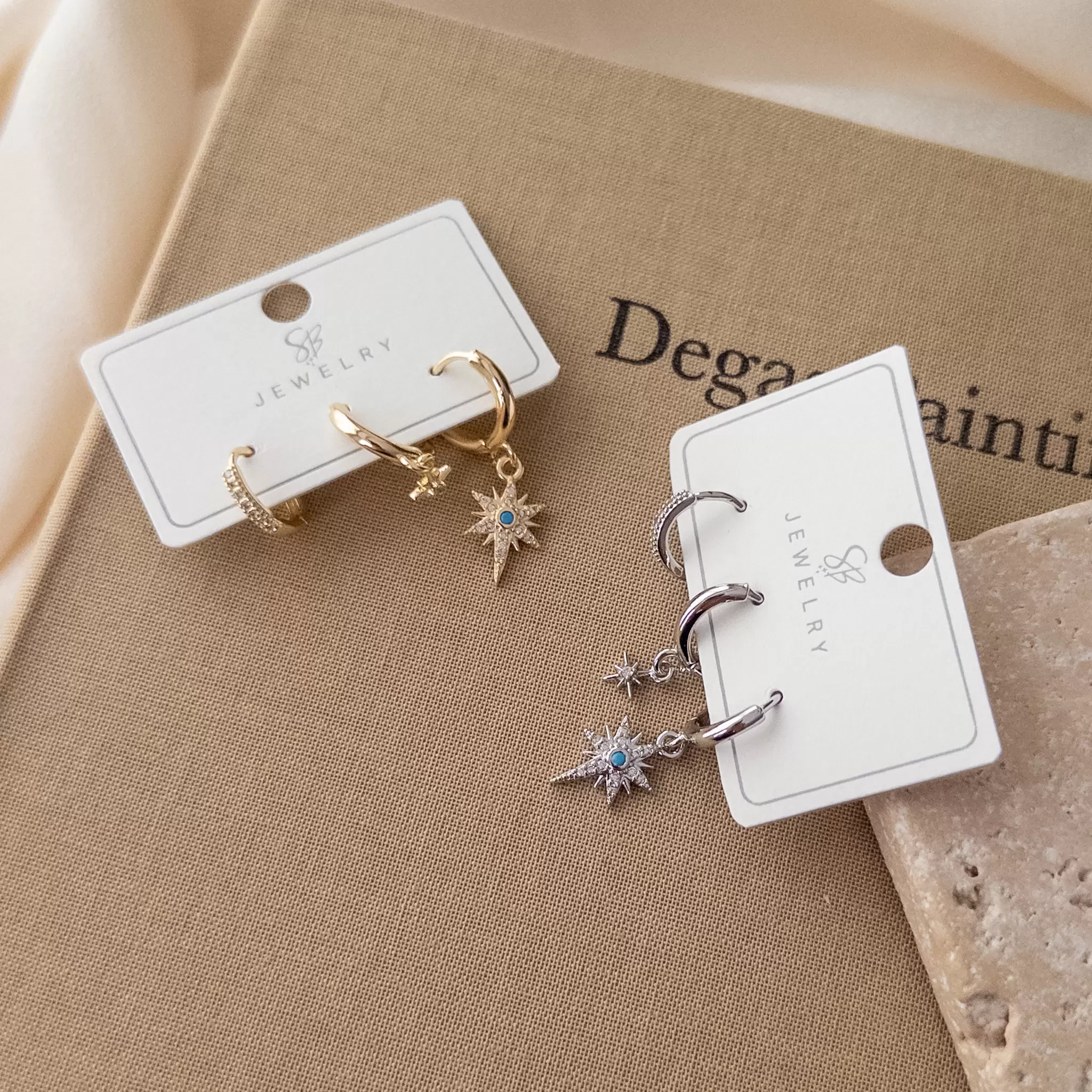 Mavi Boncuk Detaylı Zirkon Taşlı Kutupyıldızı Sallantılı Üçlü Kombin Set Küpe