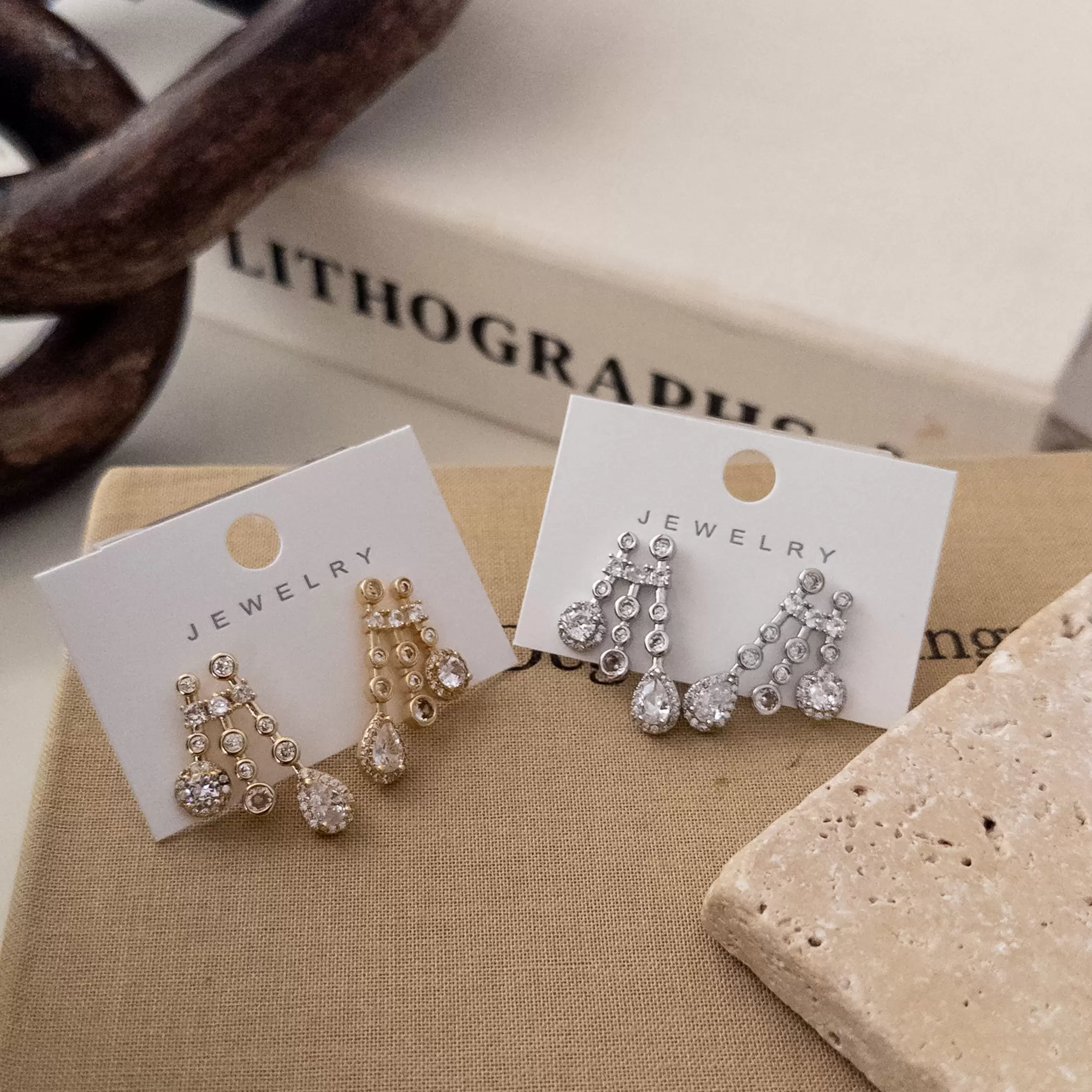 Montürlü Zirkon Taş İşlemeli Tasarım Küpe