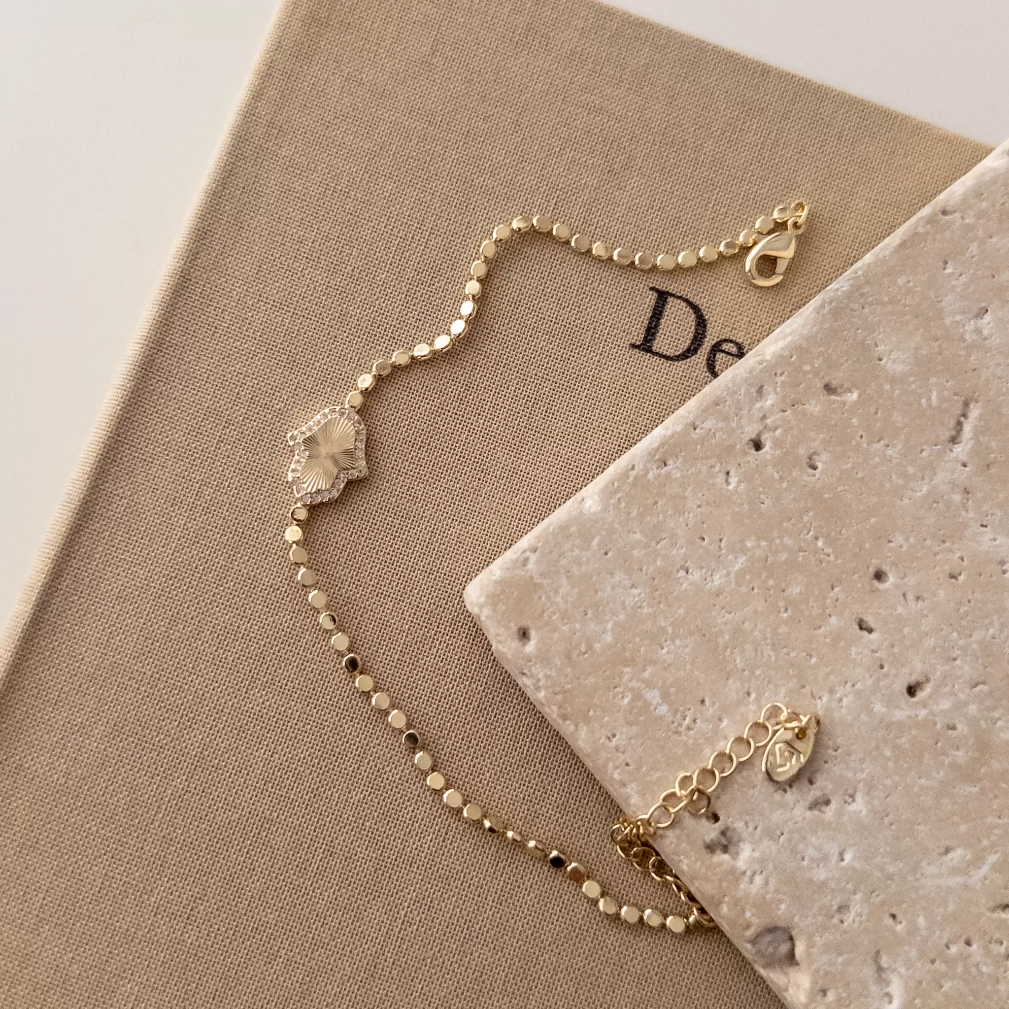 Ortası Taş Detaylı Lazer Kesim El Figürlü Ezme Zincir Bileklik