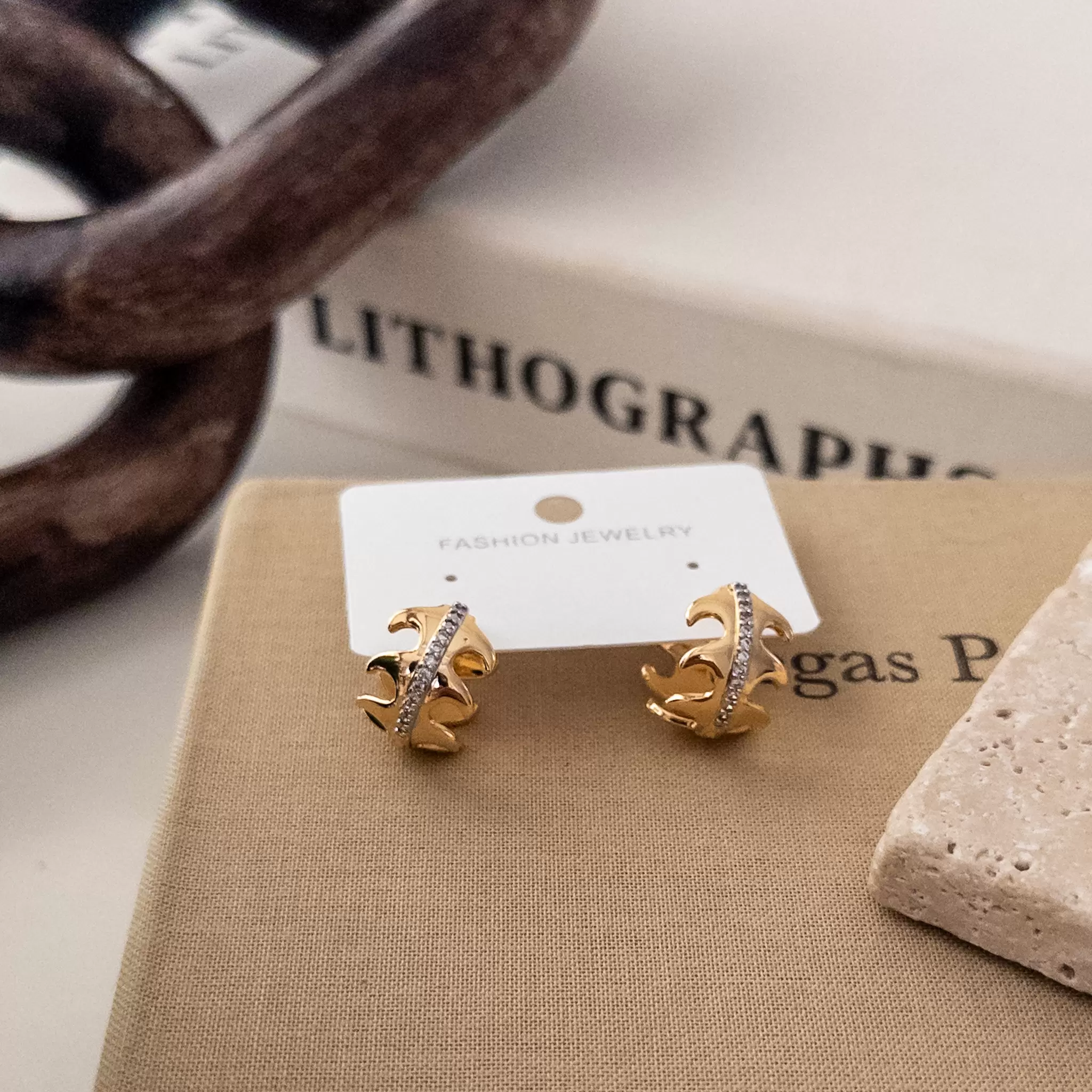 Ortası Taşlı Kenarları Çıkıntılı Tasarım Plaka Halka Küpe