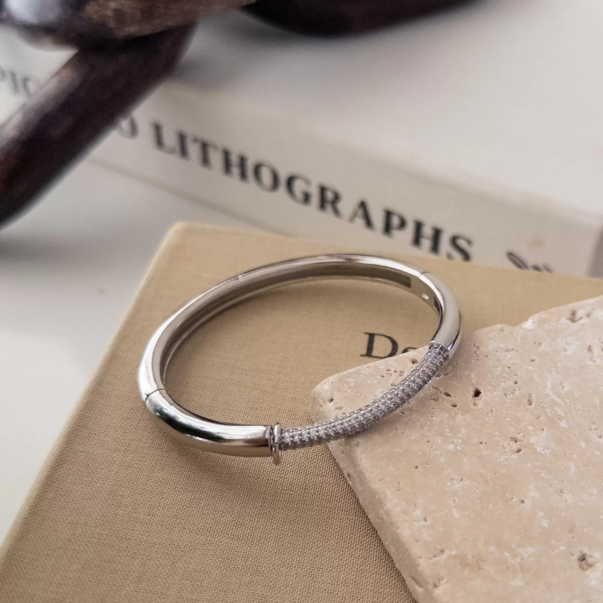 Ortası Zirkon Taşlı Gümüş Renk Tasarım Kelepçe Bileklik