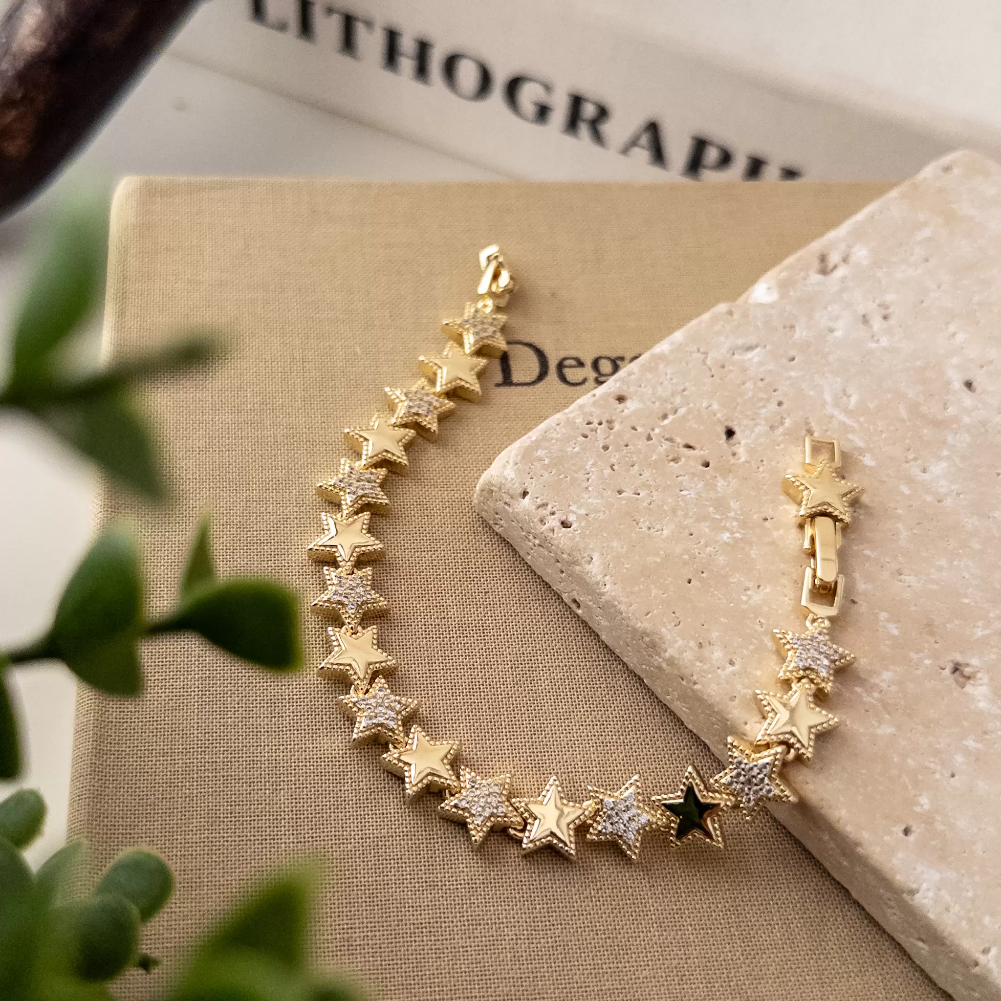 Özel Seri Lazer Kesim İşlemeli Zirkon Taşlı Tasarım Büyük Yıldız Bileklik