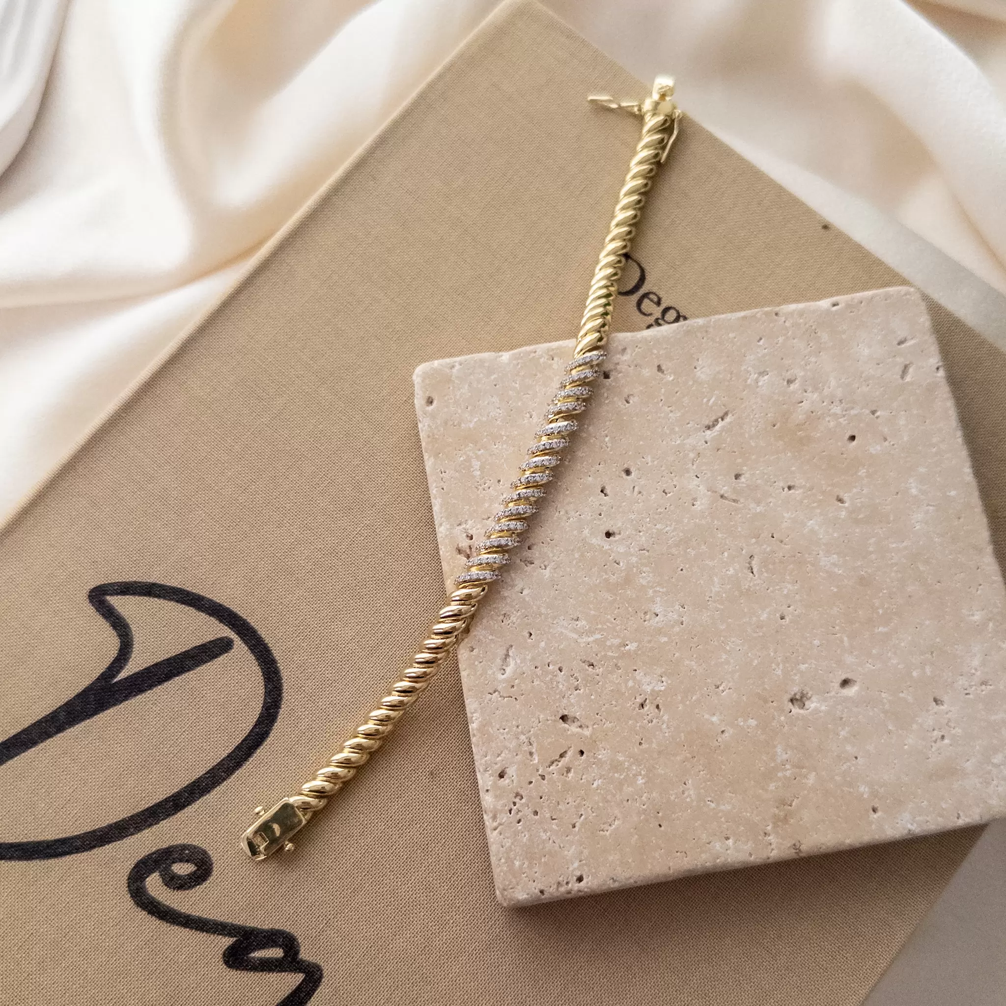 Özel Seri Ortası Burgu Zirkon Taş İşlemeli Tasarım Bileklik