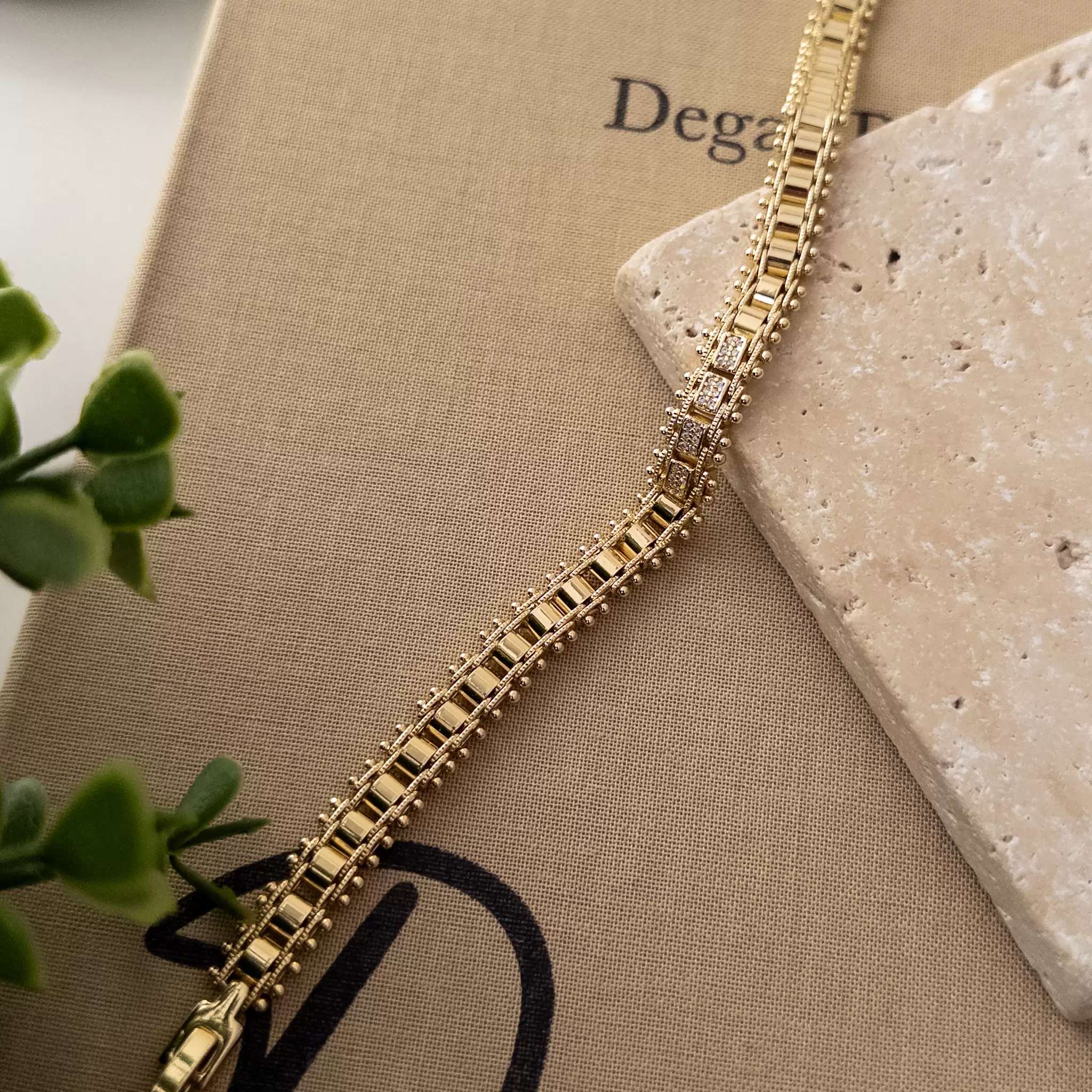 Özel Seri Ortası Zirkon Taş Detaylı Kenarları Top Zarif Tasarım Bileklik