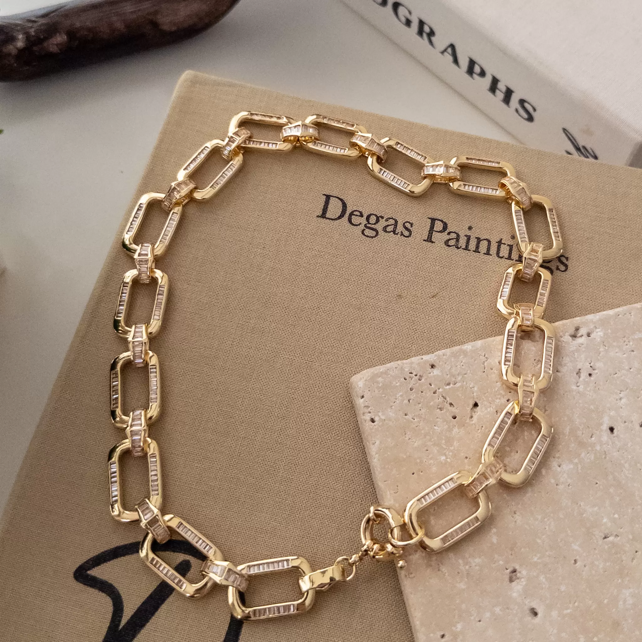Özel Seri Zirkon Baget Taş İşlemeli Dikdörtgen Zincir Kolye