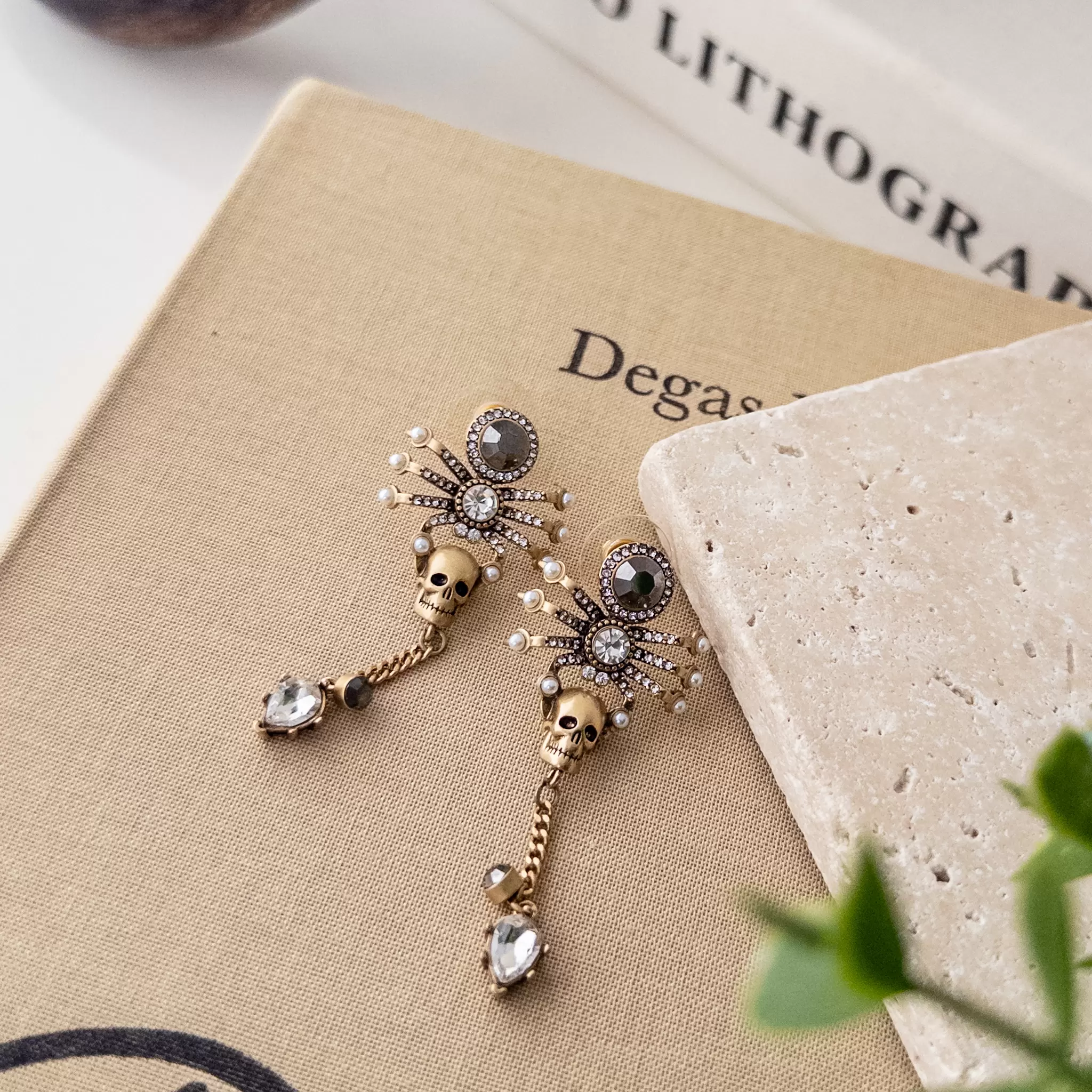 Özel Seri Zirkon Taş İşlemeli Örümcek Ve Kurukafa Figürlü Taş Sallantılı Tasarım Küpe