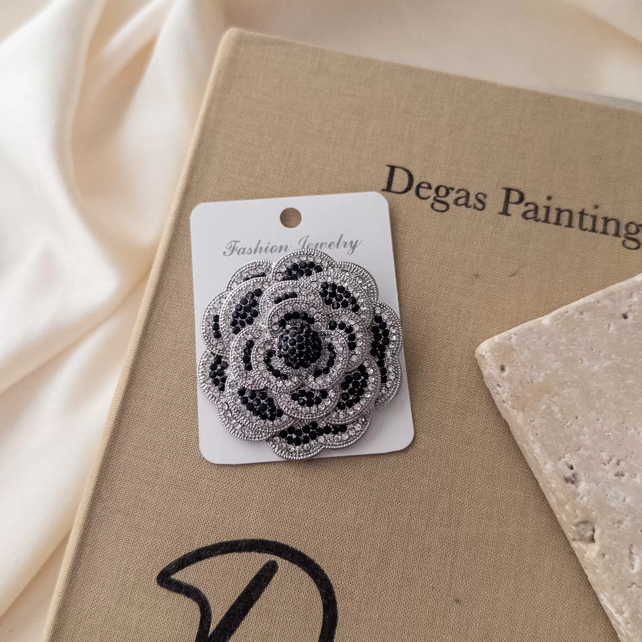 Siyah Taş Detaylı Zirkon Taş İşlemeli Büyük Çiçek Broş