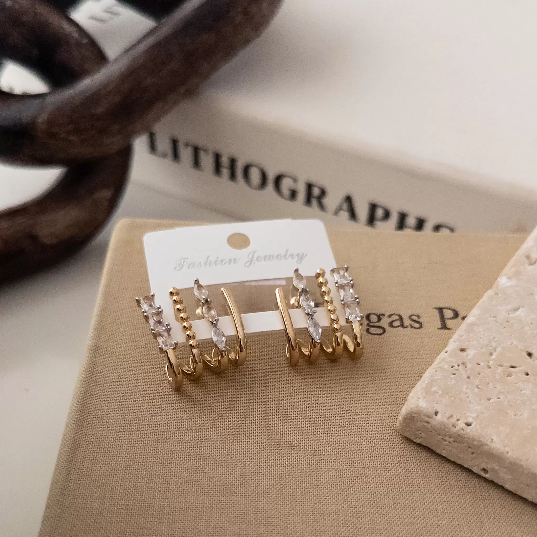 Tek Delikte Çoktu Duran Zirkon Taşlı Tasarım Küpe