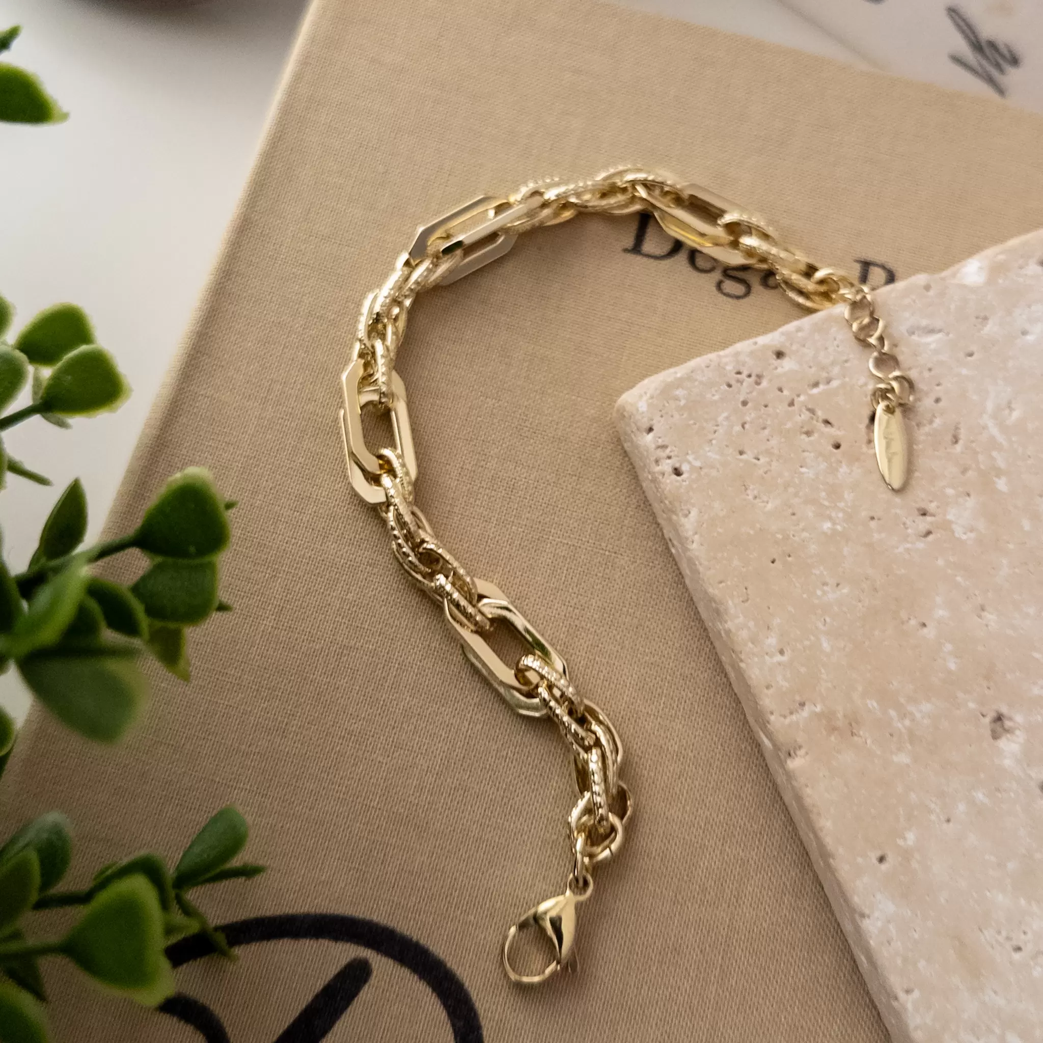 Xp Özel Seri Dikdörtgen Plaka Detaylı Zincir Örgü Kalın Bileklik