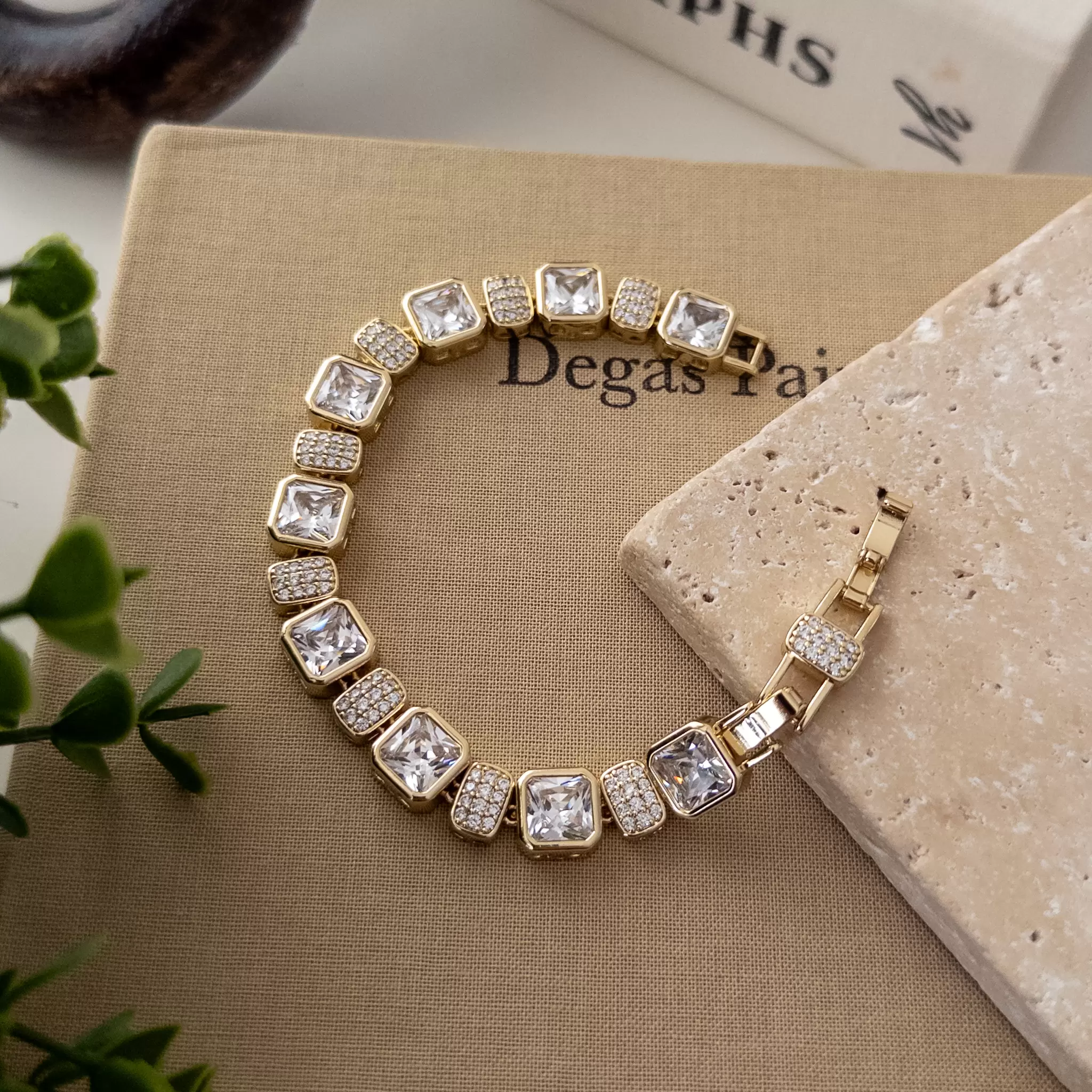 Xp Özel Seri İri Kare Taşlı Full Zirkon Taş İşlemeli Tasarım Büyük Bileklik