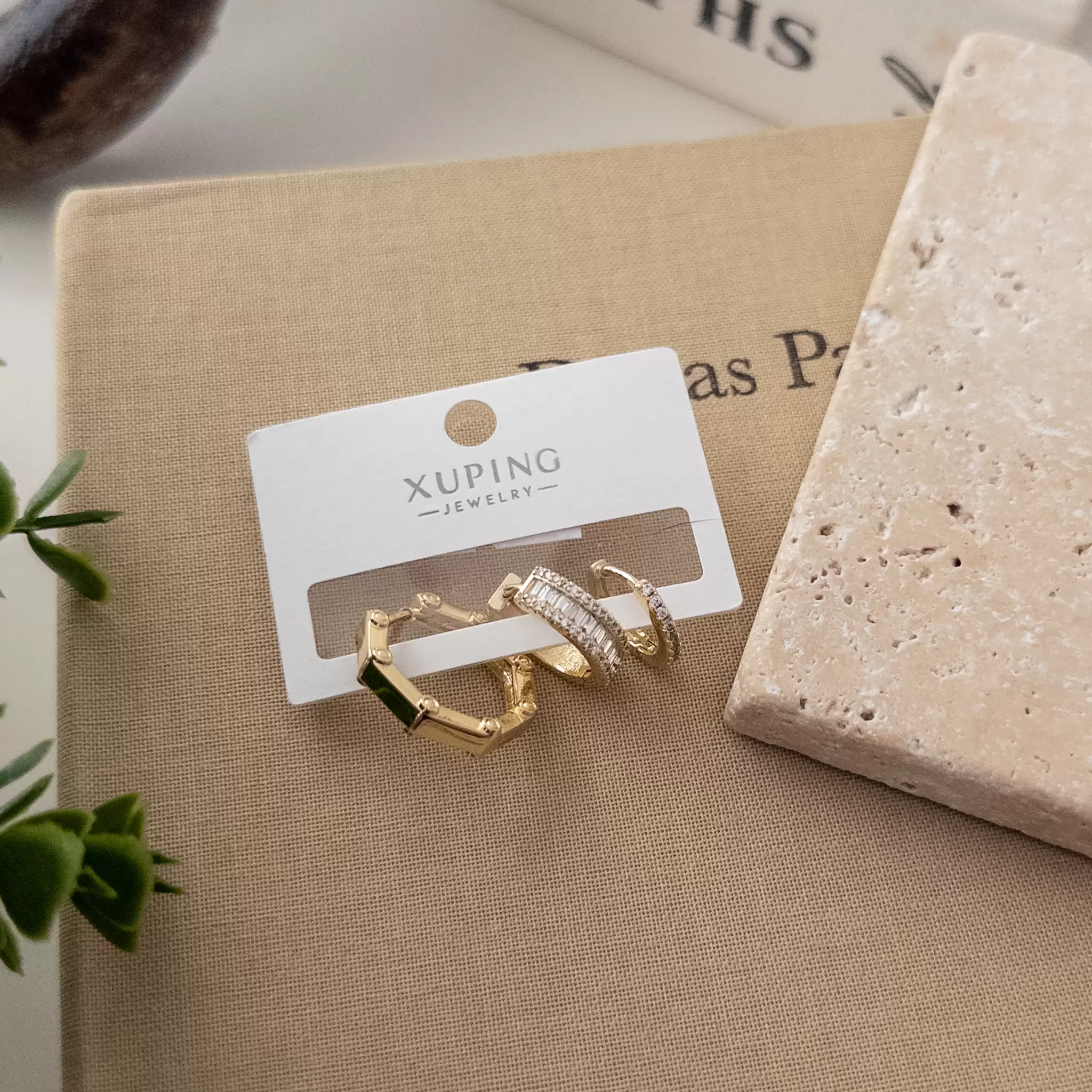 Xp Zirkon Baget Taşlı Üçlü Halka Kombin Tarz Set Küpe