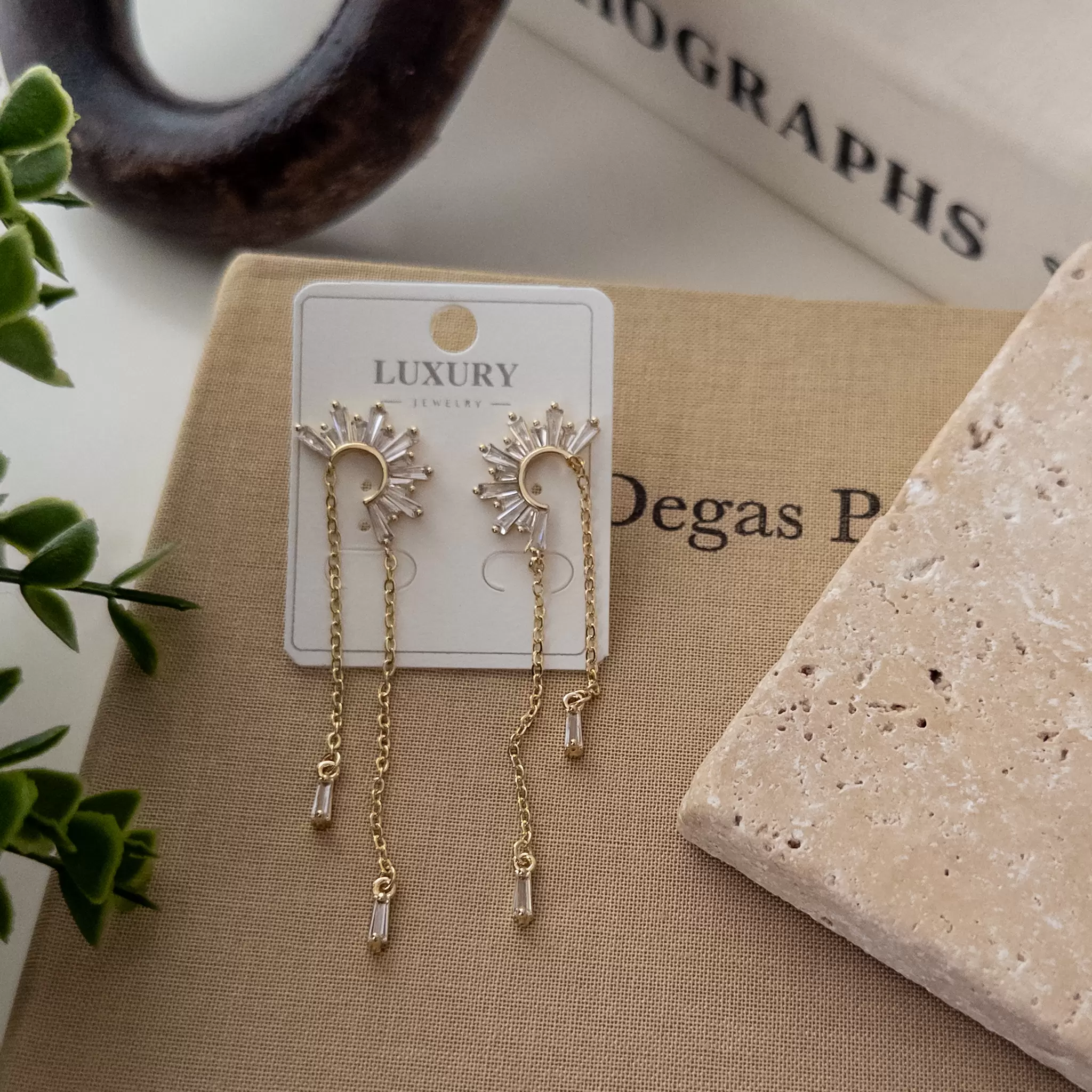 Zirkon Baget Taşlı Zincir Sallantılı Tasarım Zarif Küpe