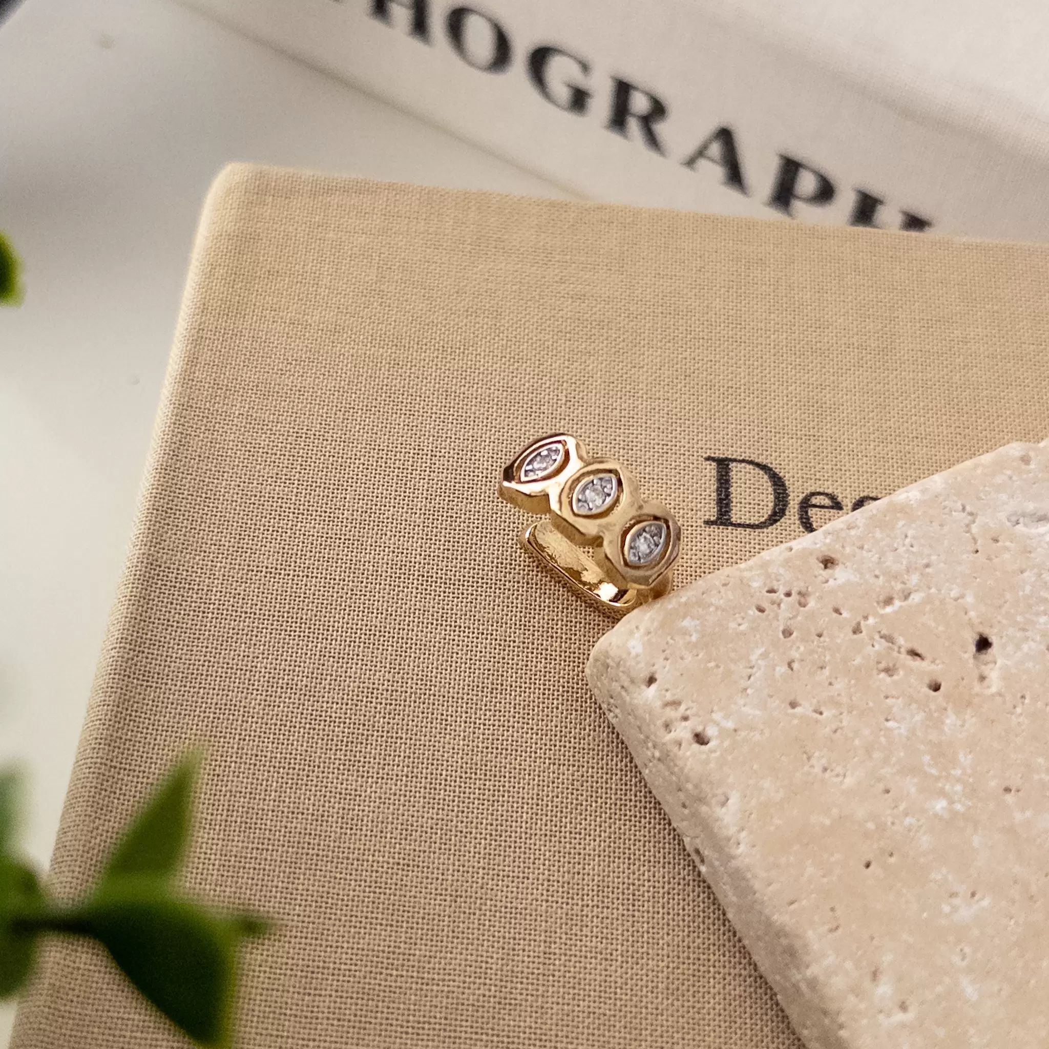 Zirkon Taş Detaylı Çift Renk Tasarım Plaka Earcuff Küpe