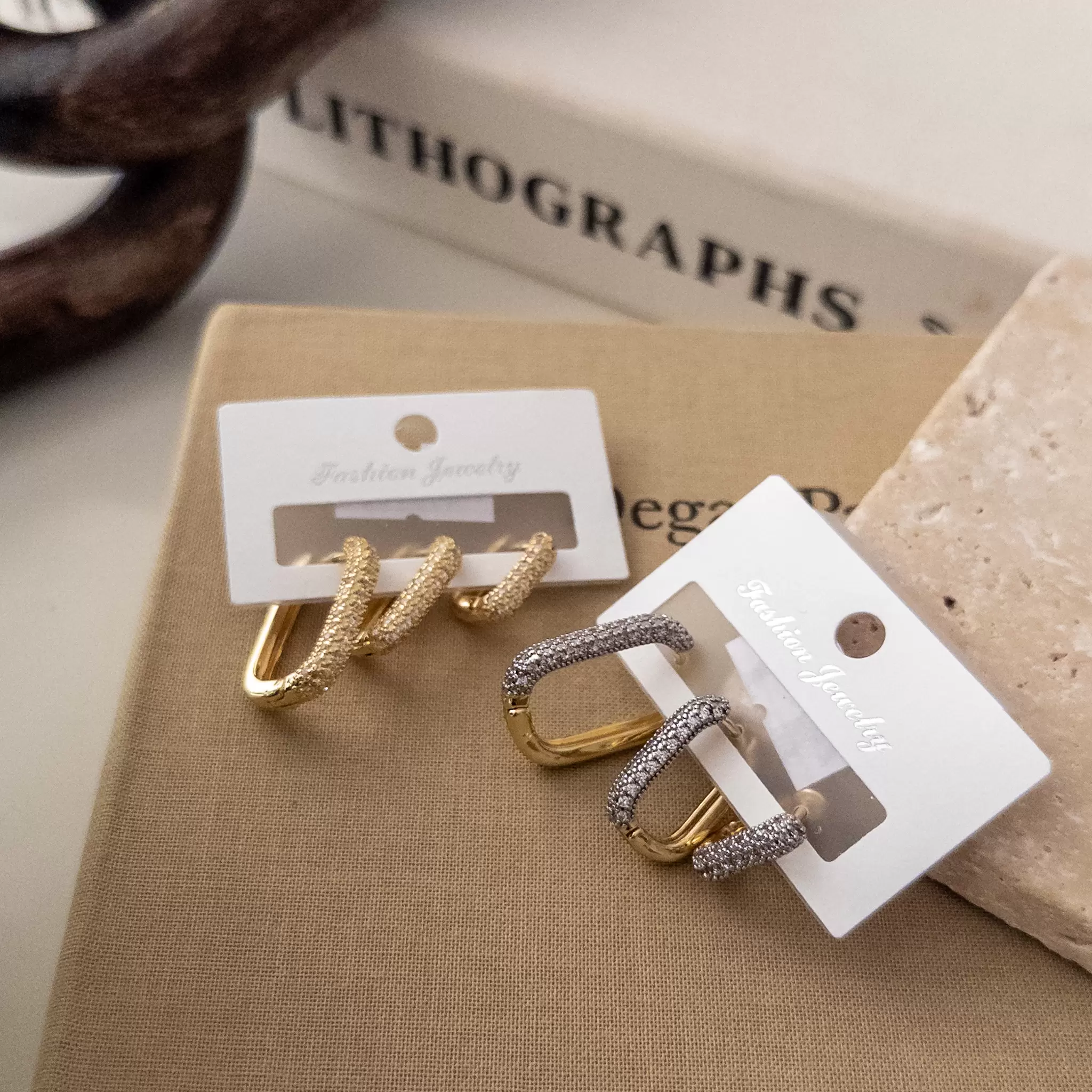 Zirkon Taş İşlemeli Kalın Üçlü U Kombin Set Küpe