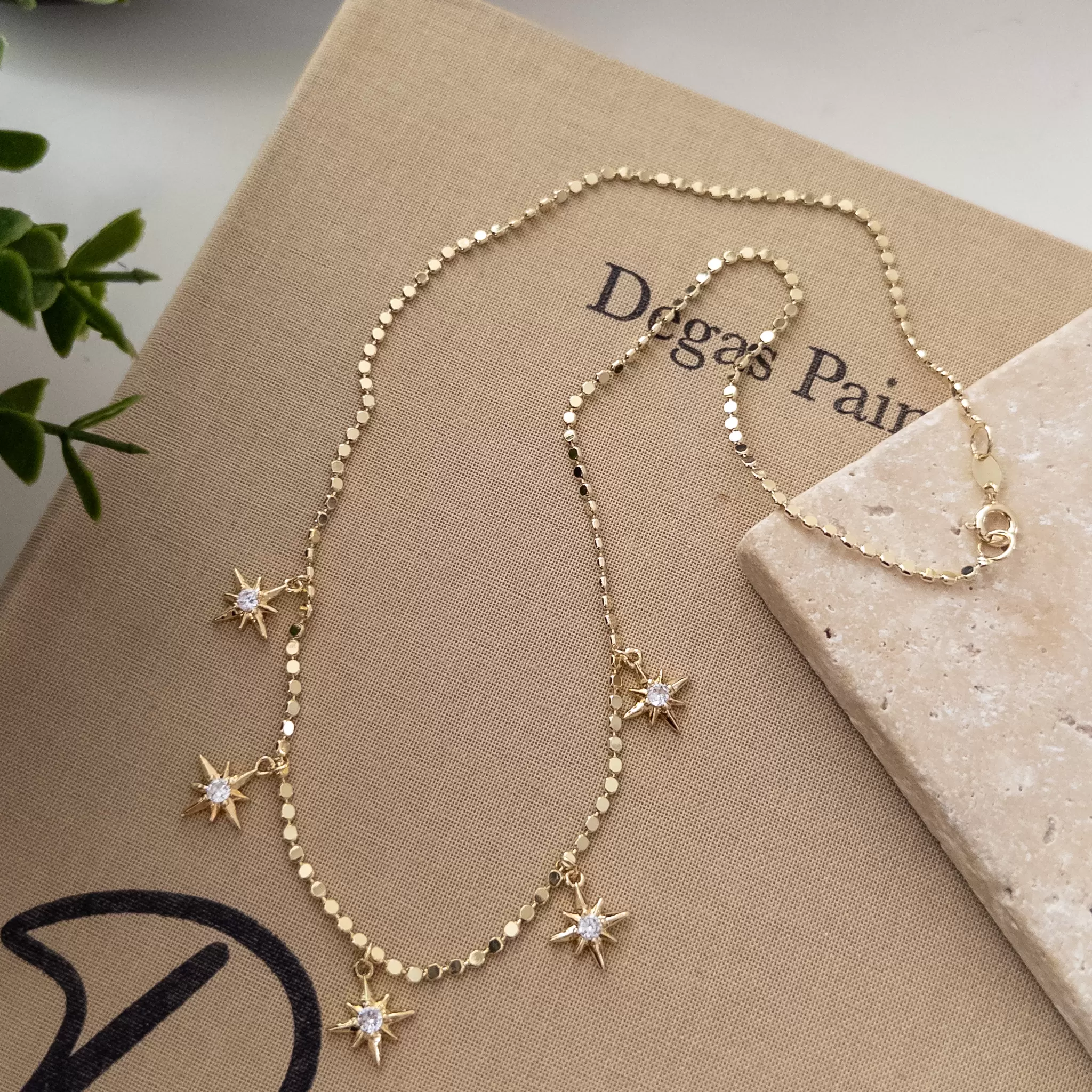 Zirkon Taşlı Kutupyıldızı Figürlü Ezme Zincir Kolye