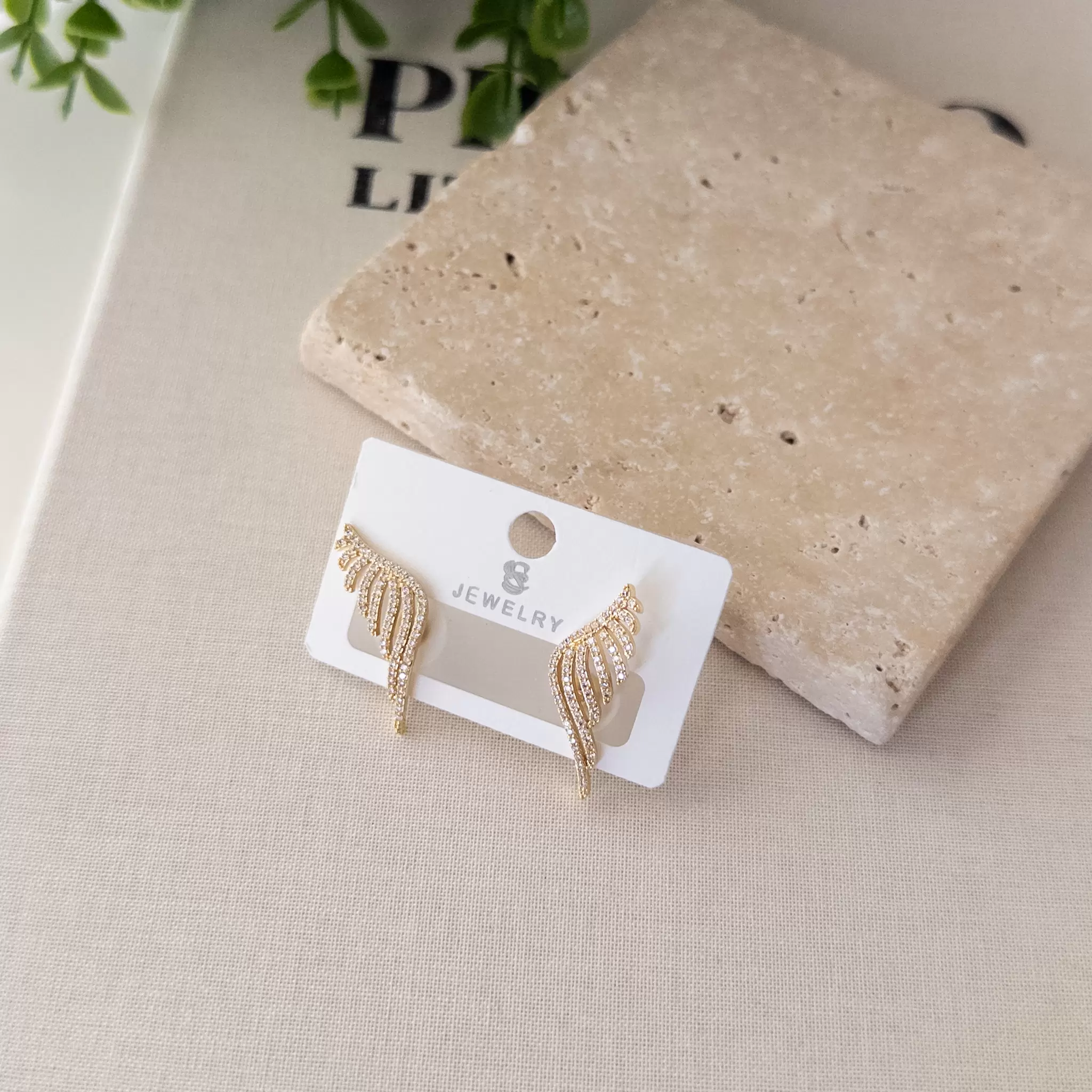 Zirkon Taşlı Tasarım Küçük Kanat Küpe