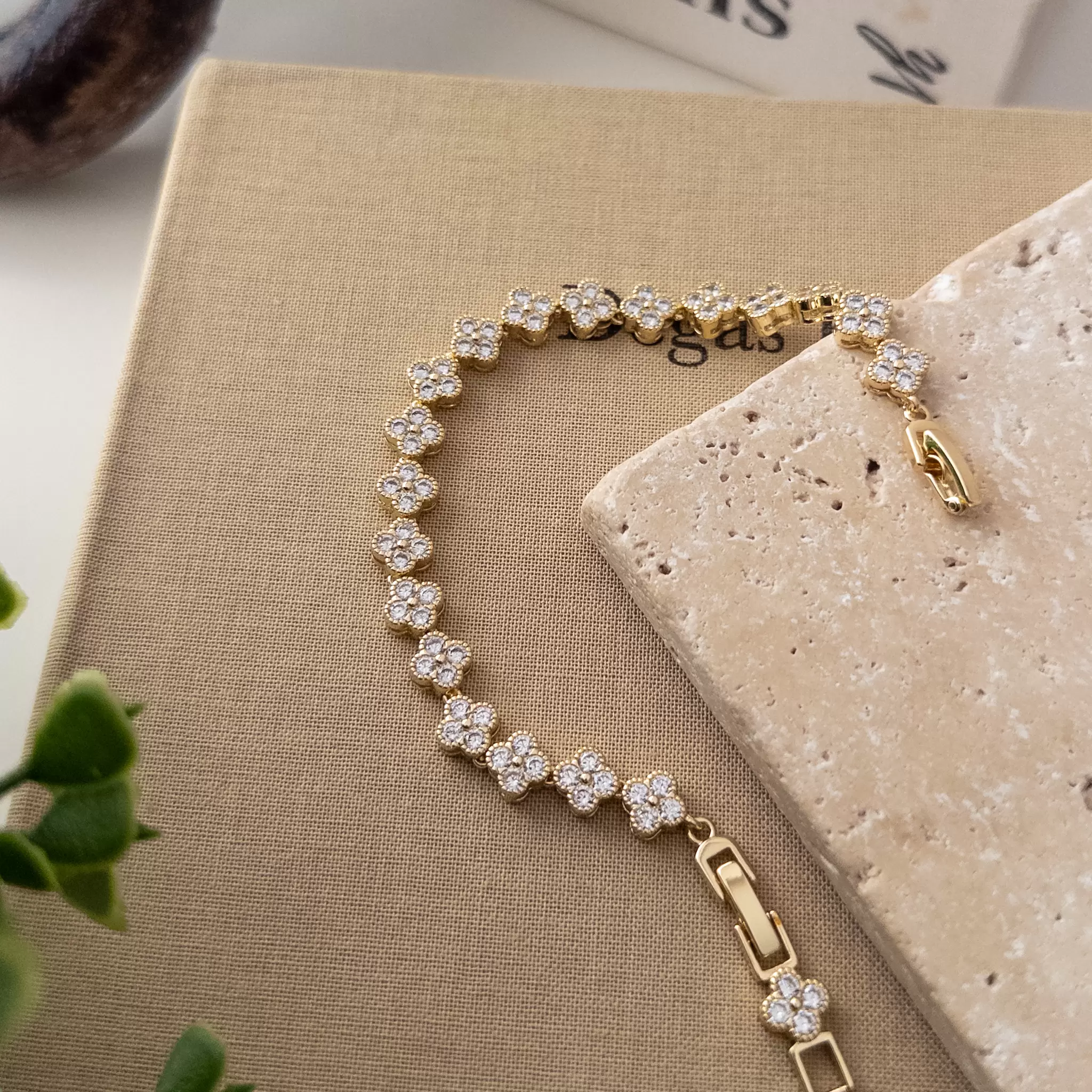 Zirkon Taşlı Yonca Bileklik